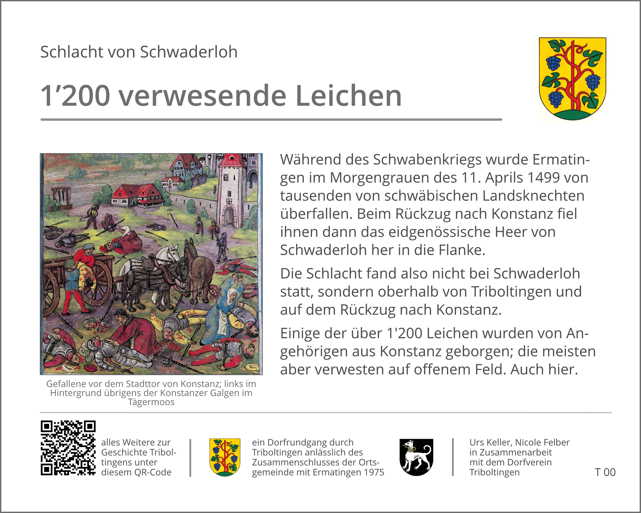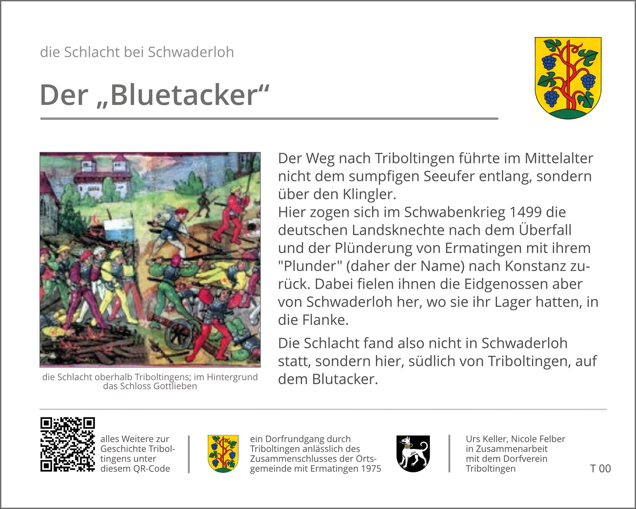 Obwohl die Schlacht als Schlacht bei Schwaderloh in die Geschichte einging, fand sie doch in den Feldern oberhalb Triboltingens statt. (Schragenhurt Blutacker) .