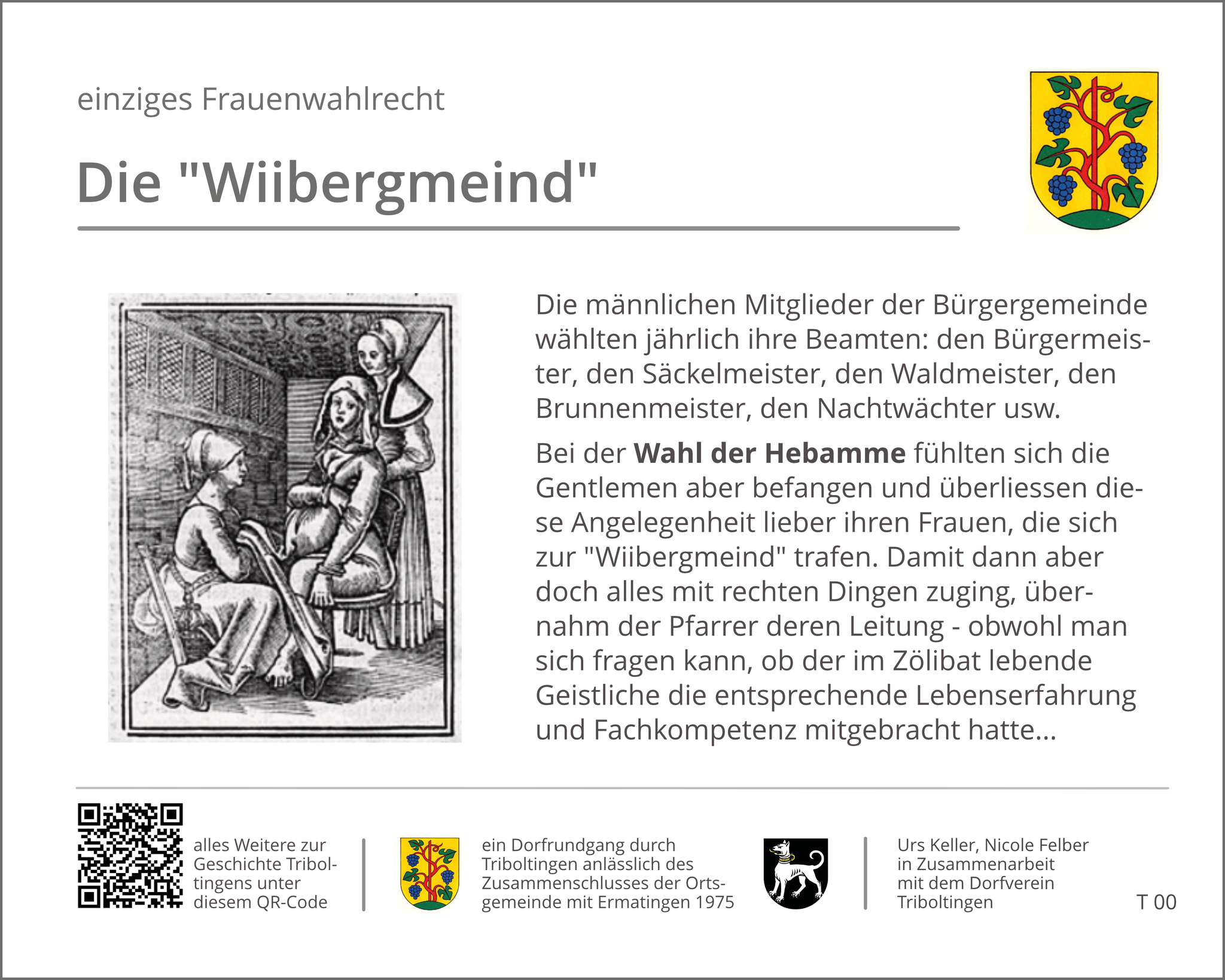 Immer, wenn eine neue Hebamme gewählt werden musste, wurde zur Wiibergmeind geladen. Zum Trunk erhielten sie nicht den eigenen, aber immerhin wohlfeilen Tirolerwein ausgeschenkt.